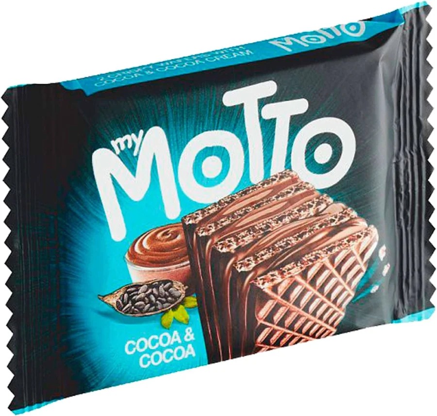 WAFER CROCANTE COM RECHEIO CREMOSO DE CACAU E COBERTURA DE CHOCOLATE.